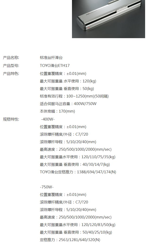 TOYO標(biāo)準(zhǔn)絲桿滑臺ETH17