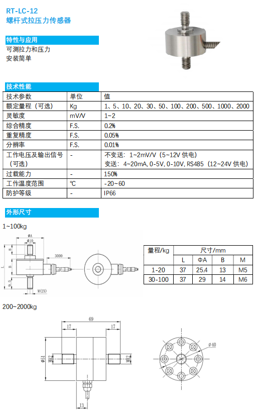 RT-LC-12 螺桿式拉壓力傳感器